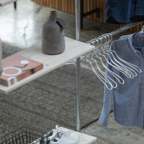 Fabriksbygningen er kendetegnet ved at have utrolig højt til loftet, og med henblik på at udnytte det mest hensigtsmæssigt, har vi skræddersyet metervis af høje vægmonterede garderobestativer i rå vandrør ved spillestedets indgangsparti. De lange garderobestativer giver ikke alene ubegrænset opbevaringsplads til alle gæsternes overtøj, de gør det samtidig nemt og overskueligt for Richters personale at manøvrere rundt og finde gæsternes frakker efter en endt koncert.