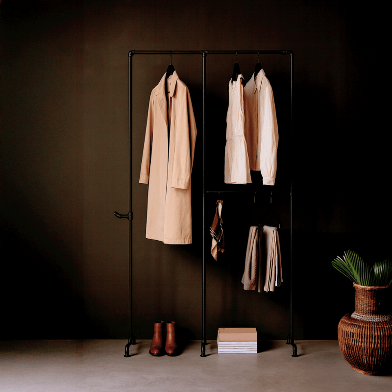 Uanset om du indretter en lille lejlighed, et kreativt studie eller en åben garderobeløsning, skiller Wild Bill Elliot sig ud. Den matte sorte rørkonstruktion skaber et urbant og stilrent udtryk, der sætter fokus på dit tøj.