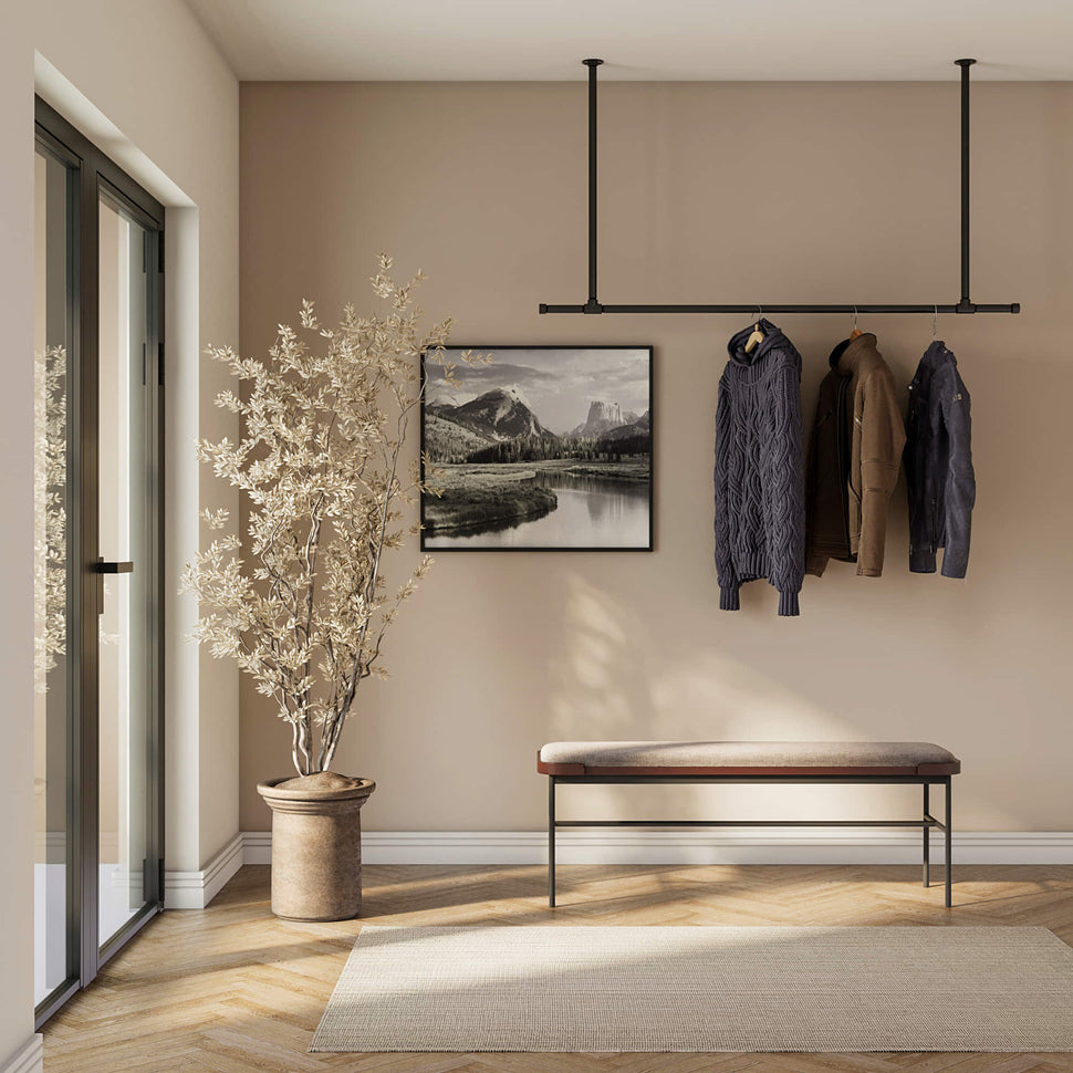 Vi forstår, at du har brug for smarte og pladsbesparende løsninger i et moderne hjem. Derfor præsenterer vi stolt RackBuddy Chuck - tøjstativ til loft med sidehæng. Vores innovative tøjstativ skaber orden og giver dine rum en ny dimension, uanset om det anvendes i gangen, garderoben eller endda på kontoret.