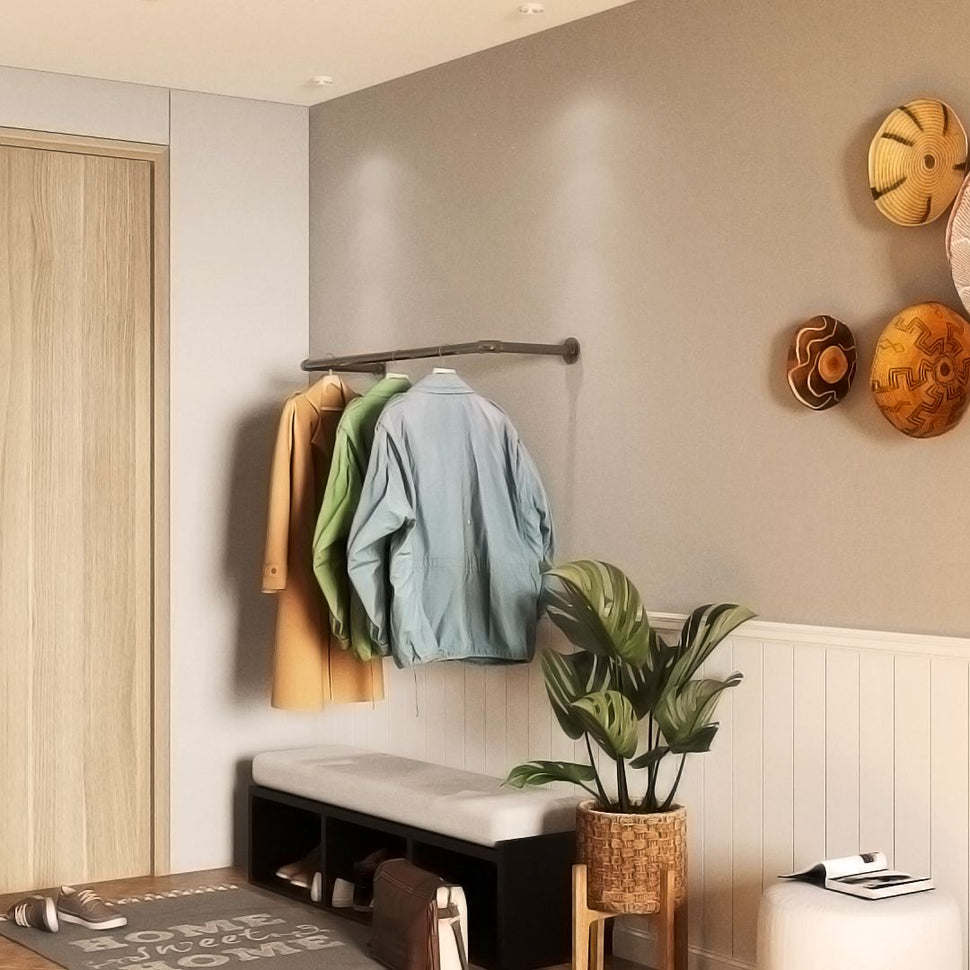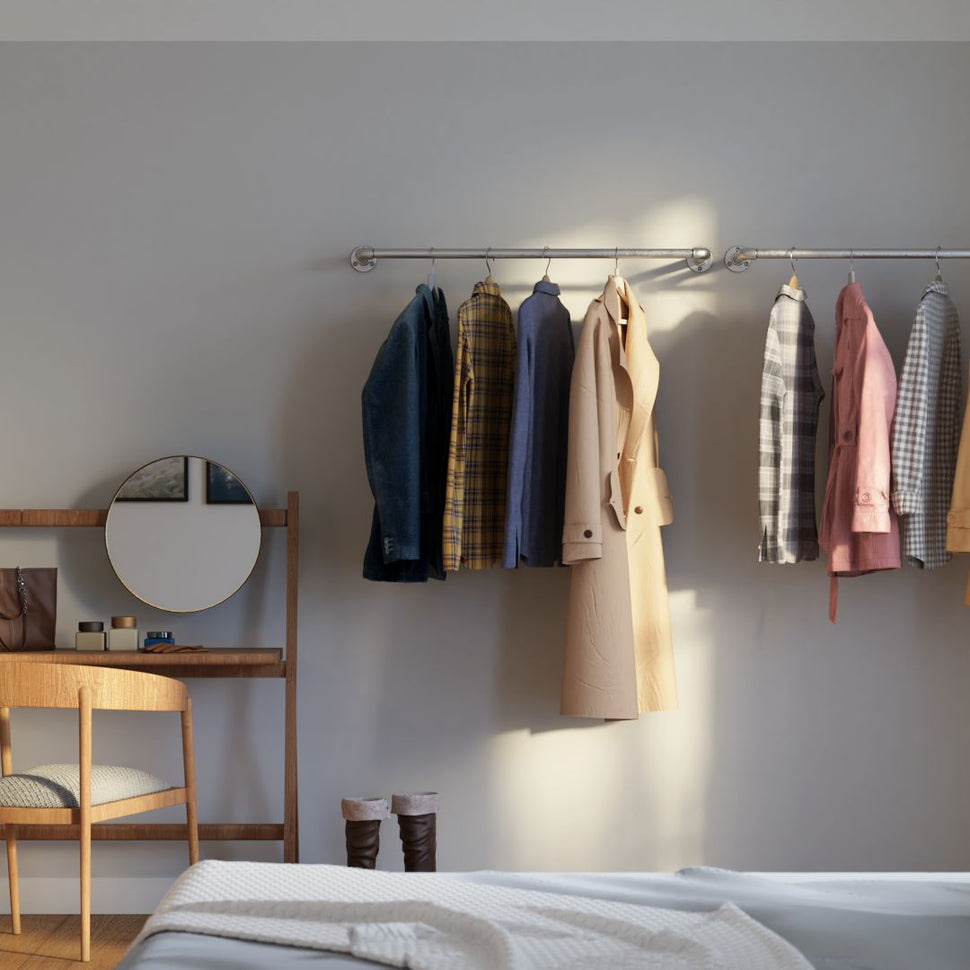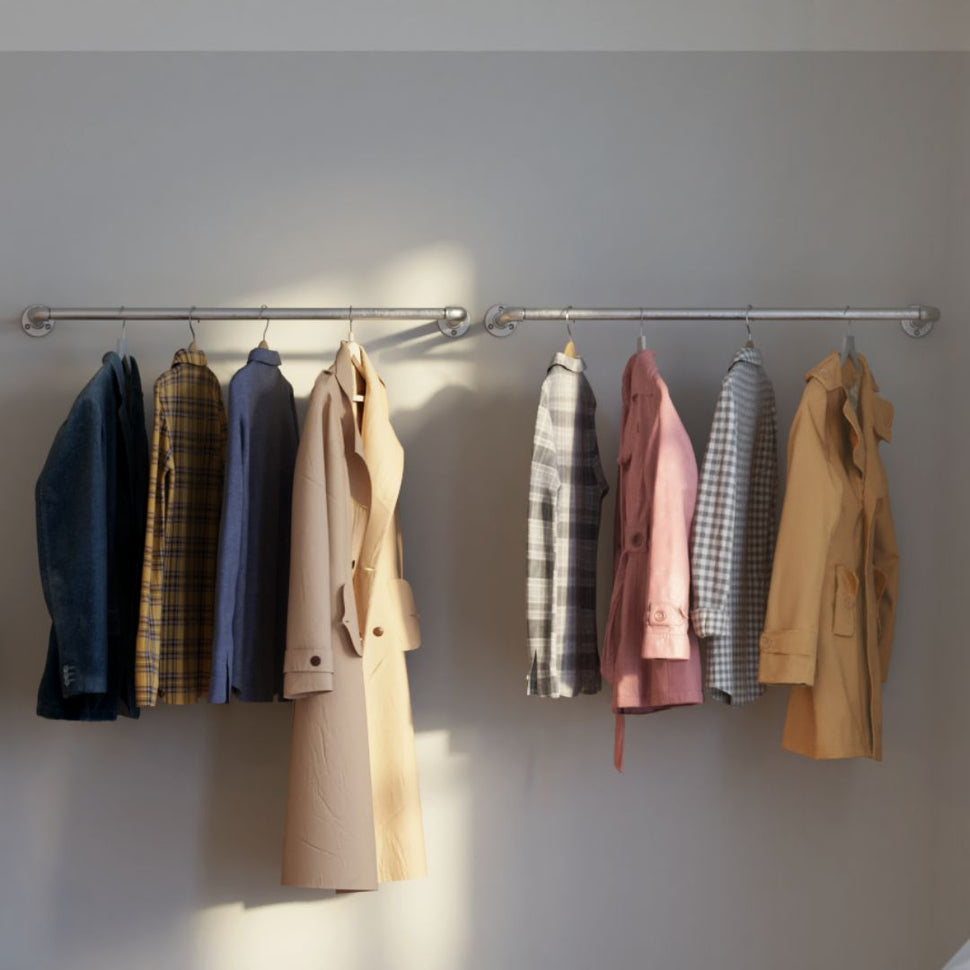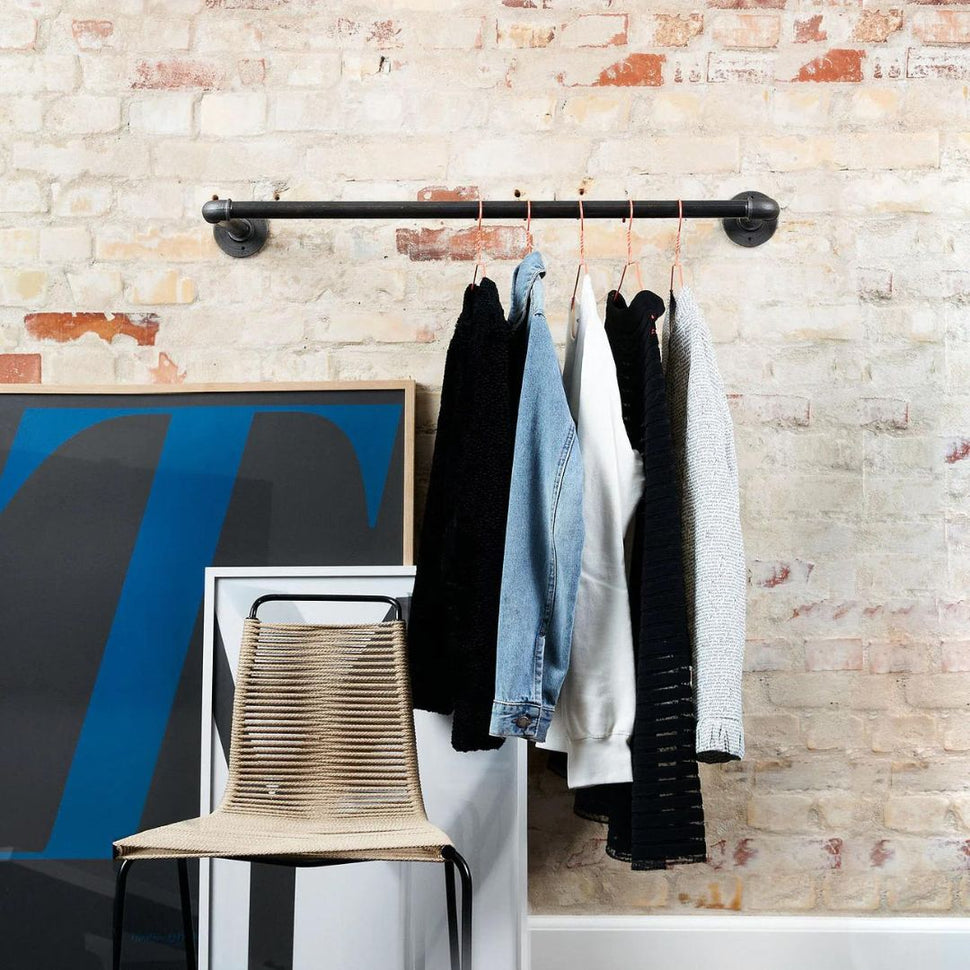 Vi har udarbejdet RackBuddy Joey med fokus på funktionalitet og design. Denne væghængte bøjlestang i vandrør kombinerer robusthed med et minimalistisk udtryk, der gør det nemt for dig at organisere din garderobe. Blandt fordelene finder du: