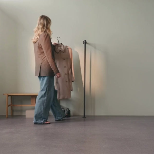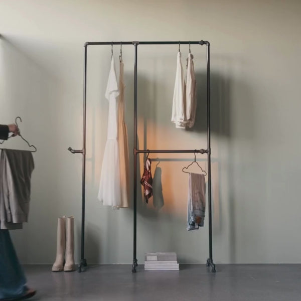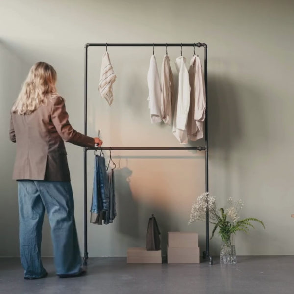 Dobbelt tøjstativ i vandrør med hæng til lange jakker og kjoler
