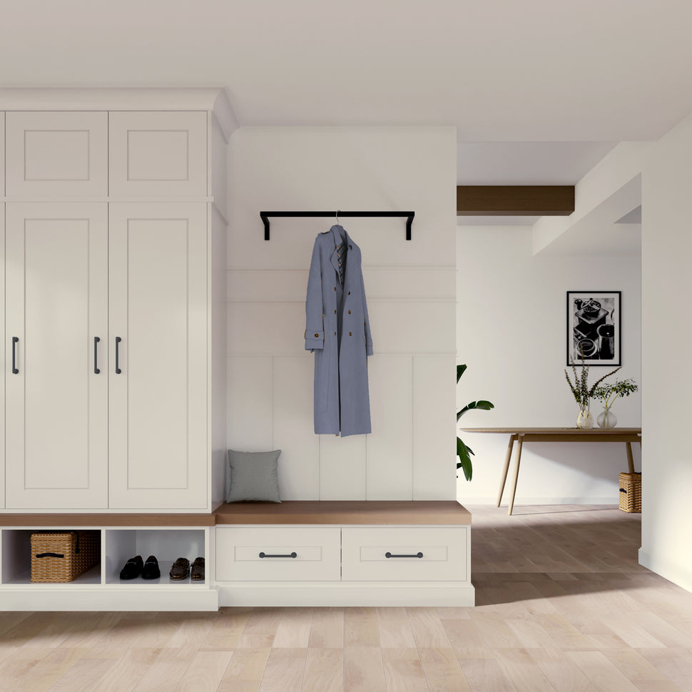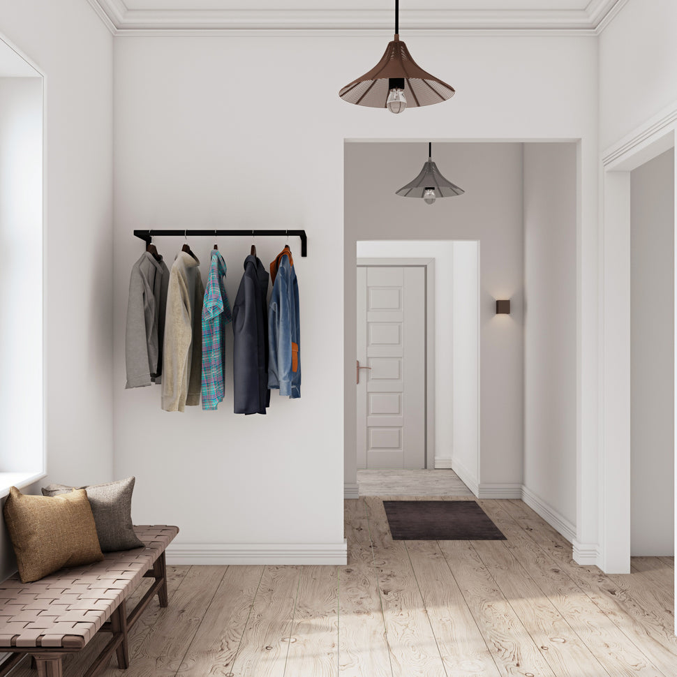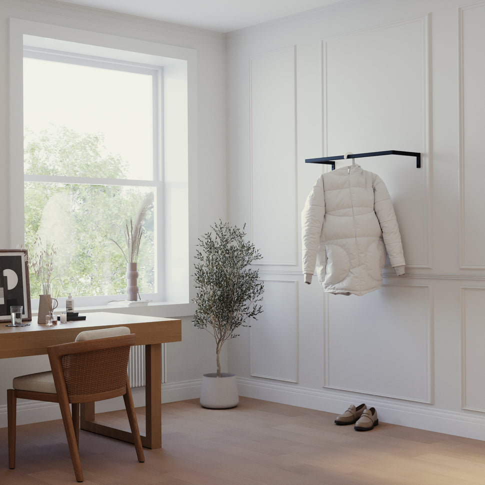 Er du træt af rod og manglende plads i dit hjem? Hos RackBuddy strækker vi standarderne for opbevaringsløsninger. Med vores Frame Joey - Vægmonteret tøjstativ får du en stilren og funktionel garderobestang, der forvandler selv mindre rum til organiserede oaser. Løsningen er designet til walk-in closets, entréer eller soveværelser og kombinerer et minimalistisk skandinavisk design med praktisk alsidighed.