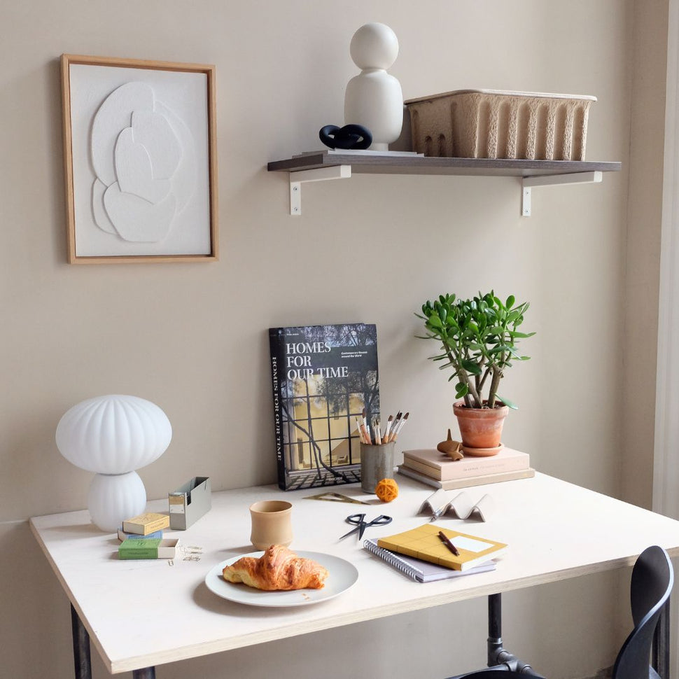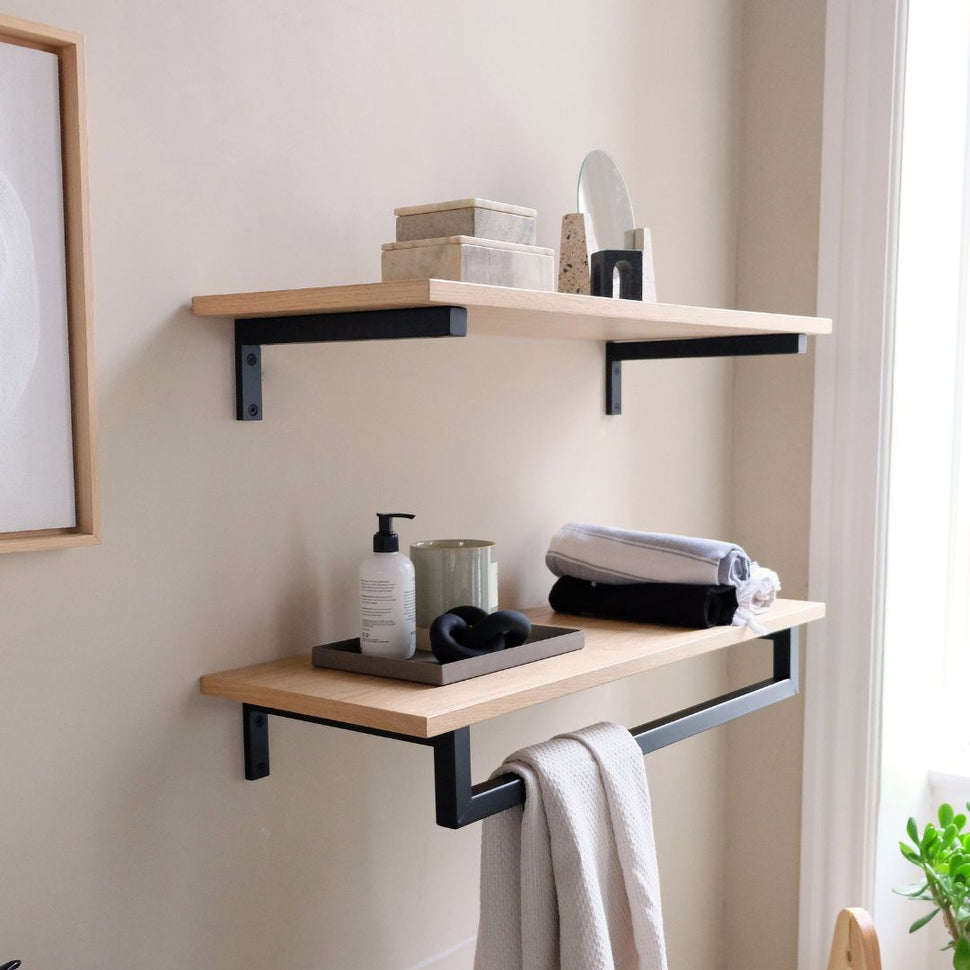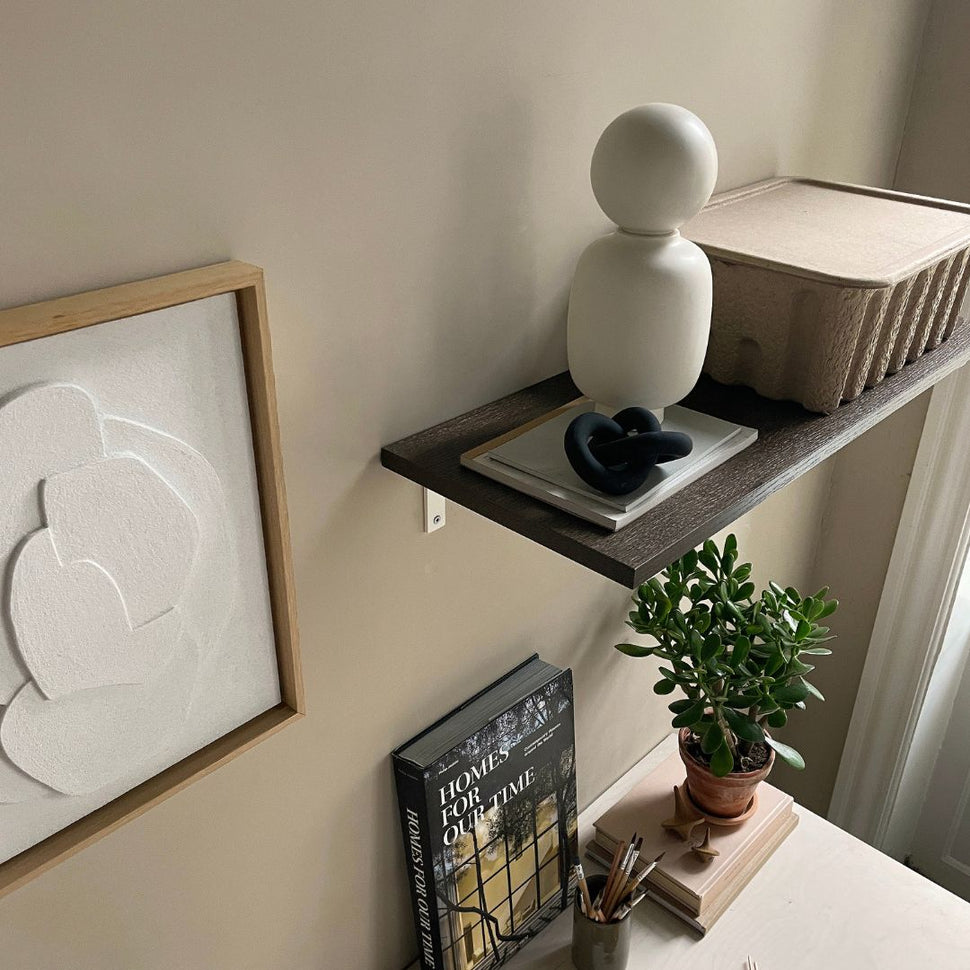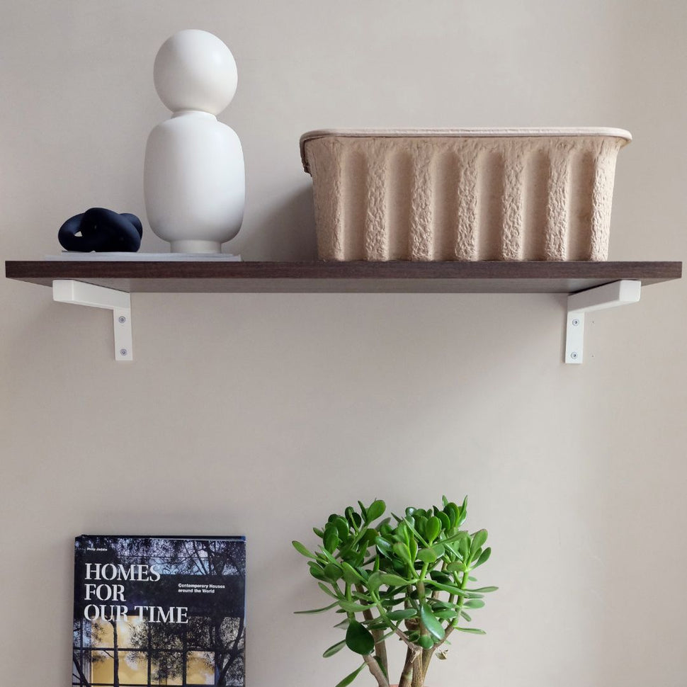 Alsidige farvevalg: Vælg mellem mat sort eller mat hvid til hyldebærere, som fuldender det minimalistiske udtryk.