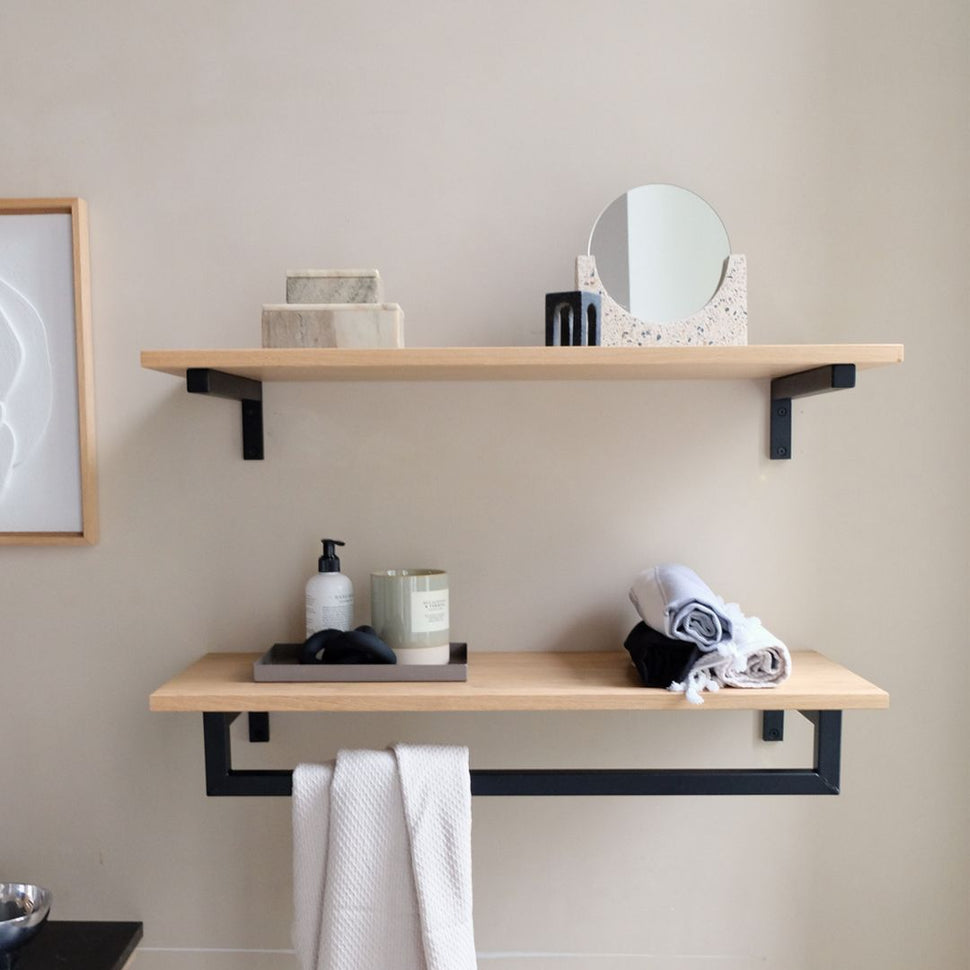 Vi har designet Frame Marlow, så den opfylder dine krav til både æstetik og funktionalitet. Ved at vælge et stativ med en integreret hylde i egetræ får du ikke bare en opbevaringsløsning, men et stilfuldt designelement, der kan pyntes med blomster, billeder eller smykker. Se også vores Frame hylder og reoler for flere opbevaringsmuligheder.