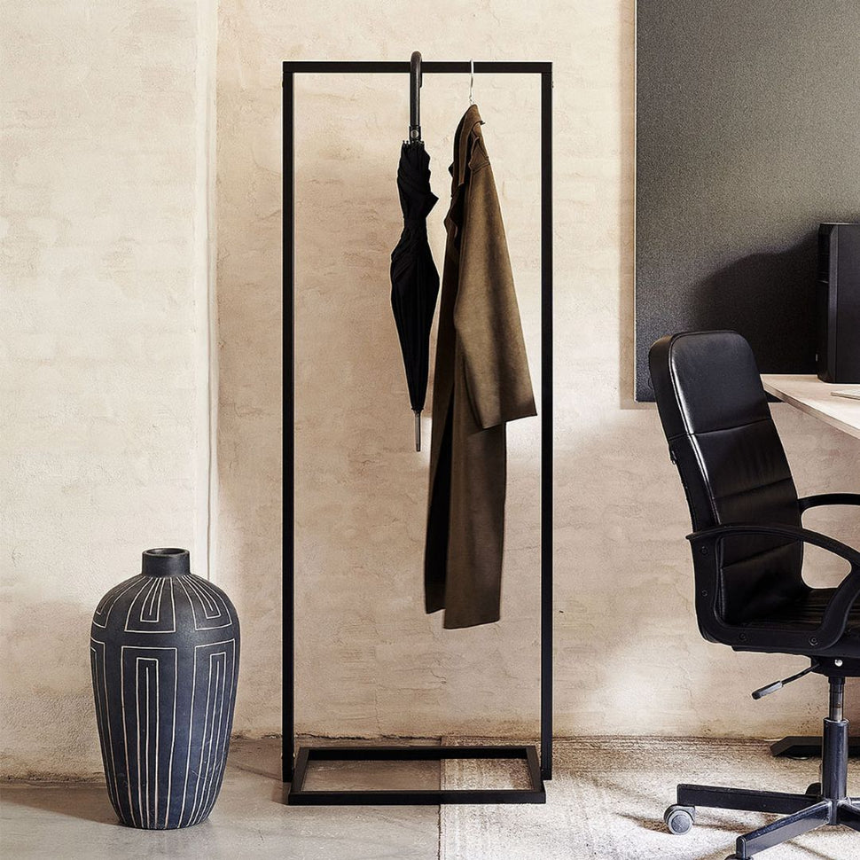 Med Frame Little Jackson - Sort tøjstativ med en firkantet bund leverer vi en elegant løsning, der imødekommer behovene hos moderne hjem. Vores stativ: