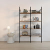 • To rækker med 4 hylder: Justerbare hylder i elegant mørk eller lys fyr, klassisk egetræsfinér eller eksklusiv røget egetræsfinér – designet til at tilpasse sig dine behov.