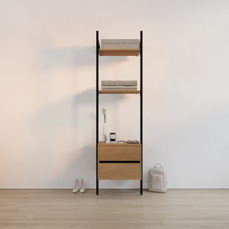 Opdag din nye opbevaringsløsning – Frame Walk-In 1 række med kommode - (2 hylder + 1 kommode)