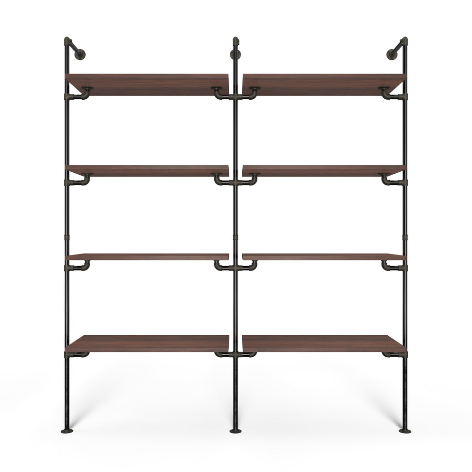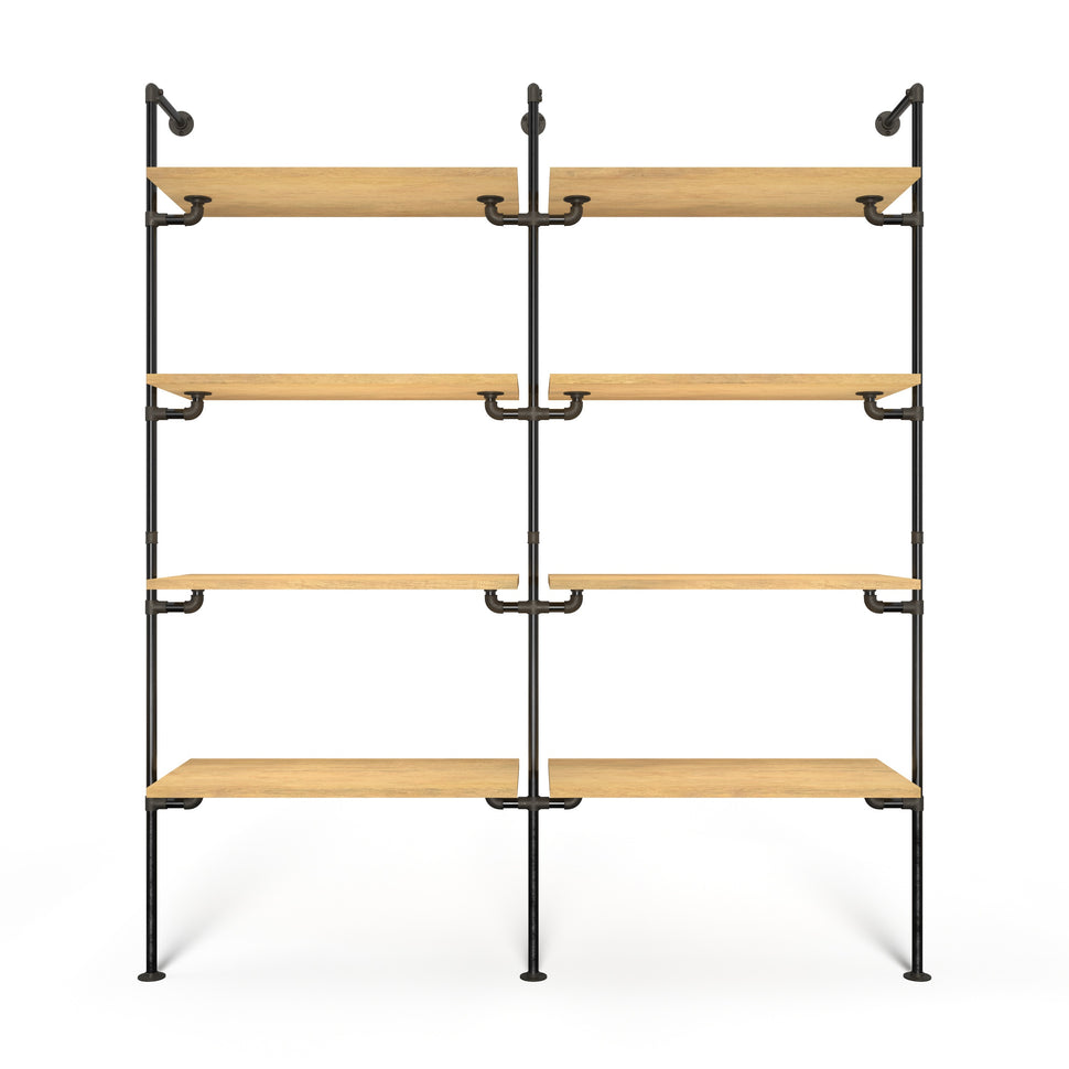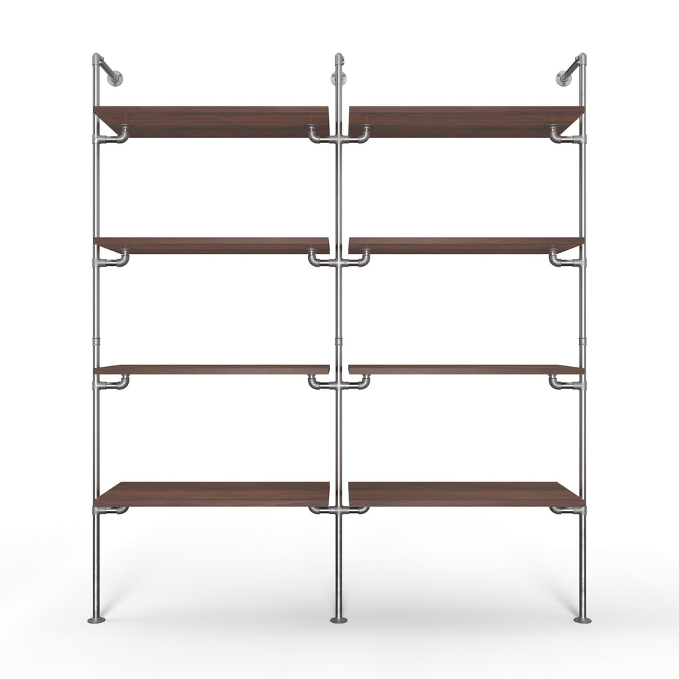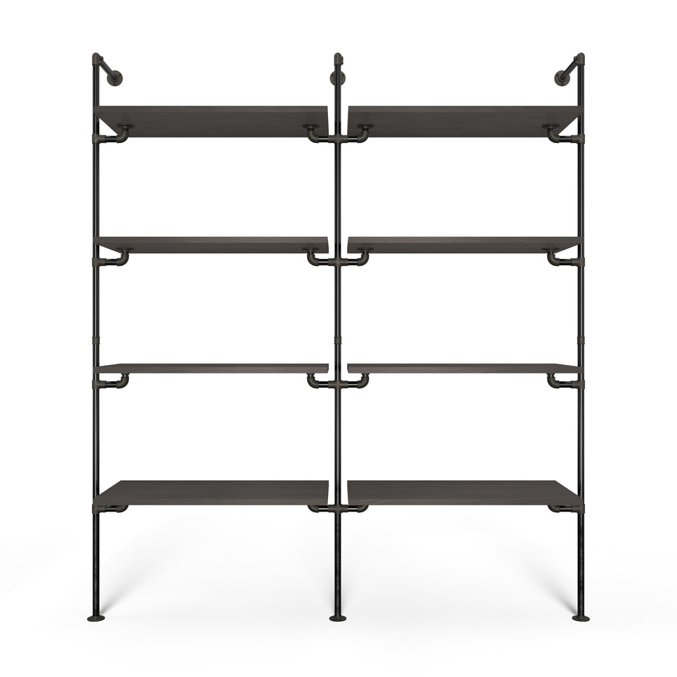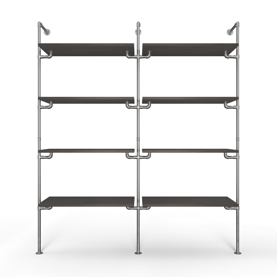 Vores reolsystem imødekommer dine designønsker og praktiske behov med en kombination af stil og robust funktionalitet. Med to rækker og fire justérbare hylder i hver række får du maksimal opbevaringsplads, uanset om det skal bruges i dit walk-in closet eller som en flot bogreol i stuen.
