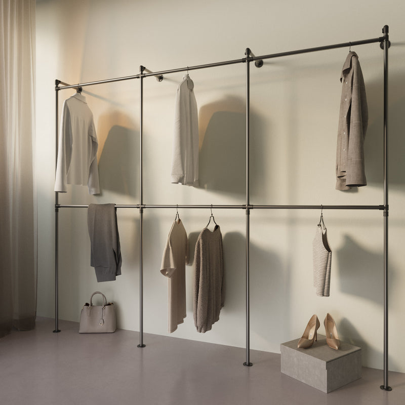 Skab orden med The walk-in 3 rækker reol system - (2 hæng / 2 hæng / 2 hæng)
