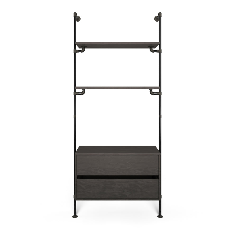 Med The Walk-In med kommode - (2 hylder + 1 kommode) kan du skabe et overskueligt og personligt walk-in-closet, hvor alt har sin plads. Vores løsning er en del af The Walk-In Collection, hvilket giver dig mulighed for at kombinere med yderligere hyldeplads eller hængende elementer efter behov. Se også vores Walk-In reolsystem med 3 rækker med 4 hylder for endnu flere opbevaringsmuligheder.