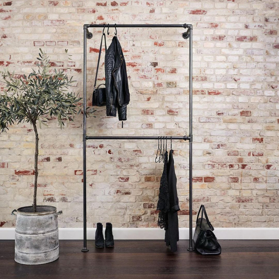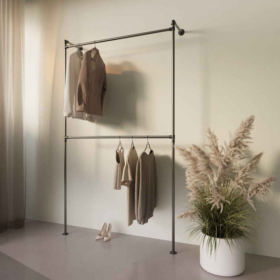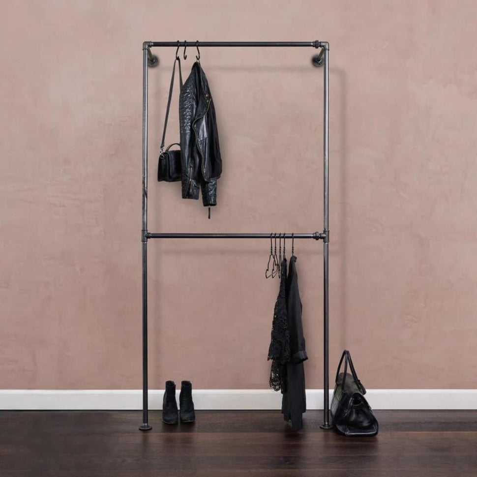 Har du nogensinde oplevet, at din garderobe mangler både stil og funktionalitet? Hos os i RackBuddy forstår vi udfordringen. Derfor præsenterer vi stolt RackBuddy Bob Steele - Dobbelt Tøjstativ til væg i vandrør, der kombinerer skandinavisk design med robusthed og fleksibilitet. Vores tøjstativ er skabt til at maksimere din opbevaringsplads, selv i de mest udfordrende rum, og med en elegant æstetik, der passer til ethvert hjem.