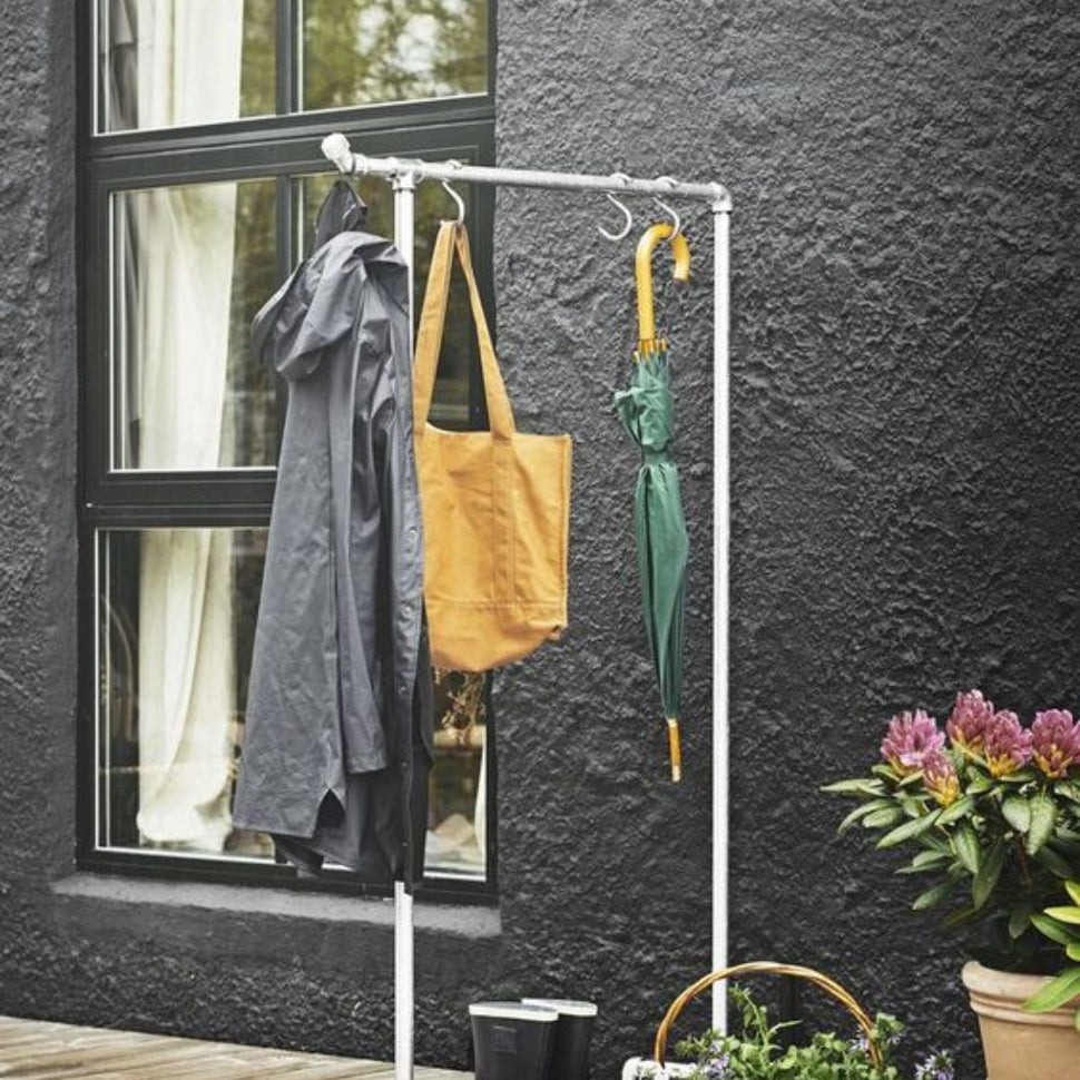 Robust og Stabilt: Tøjstativet er fremstillet af solide vandrør, der kan holde selv den tungeste jakke.