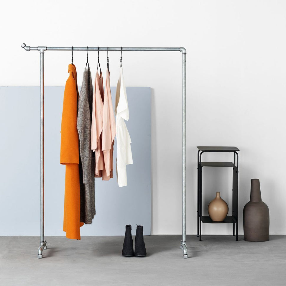 Industrielt tøjstativ design i vandrør med krogVi tilbyder gratis rådgivning og design