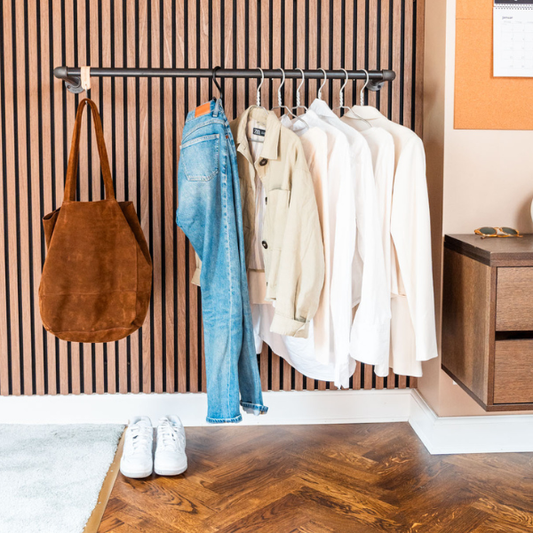 Hos os i RackBuddy forstår vi, hvor udfordrende det kan være at skabe orden i et begrænset rum. Derfor præsenterer vi RackBuddy Joey - Væghængt bøjlestang i vandrør, en stilren og pladsbesparende løsning, der strækker grænserne for moderne opbevaring. Med vores innovative design får du en løsning, der både er praktisk og æstetisk tiltalende – perfekt til små soveværelser, garderober og entréer. Læs mere om Joey og vores koncept i RackBuddy Heroes - mød 'Joey'.