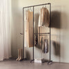 Vi tror på, at en god løsning ikke bare skal se flot ud – den skal også være let at installere og tilpasse. Derfor monterer vi The walk-in 2 rækker reol system - (1 hæng / 2 hæng) sikkert i din bagvæg uden at bore ned i gulvet. Du har desuden fleksibiliteten til at montere stativet sidelæns, hvis du foretrækker det lange hæng i højre side.