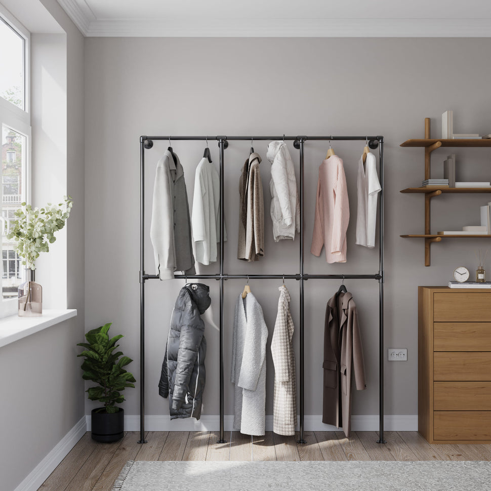 • Tre rækker med to hæng-niveauer – giver optimal plads til bluser, sweatre, bukser og andet tøj.
