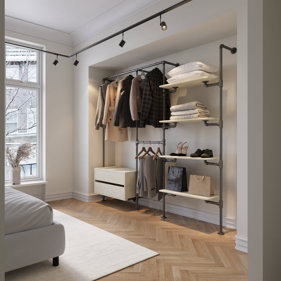 Oplev The Walk-In med kommode - (1 hæng + 1 kommode / 2 hæng / 4 hylder)