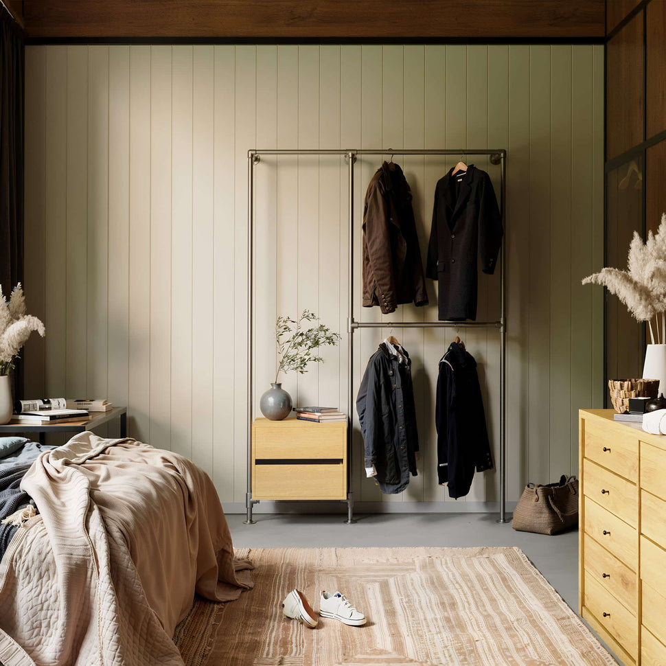 Er du klar til at skabe din ideelle walk-in garderobe? Med RackBuddys Product Builder får du mulighed for at designe en garderobe, der både er funktionel og stilfuld. Vælg blandt et væld af tilpasningsmuligheder og sammensæt din løsning, præcis som du ønsker det.