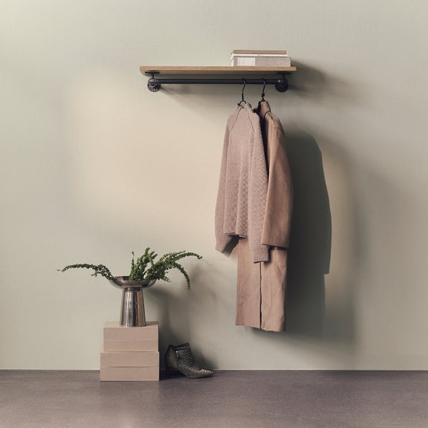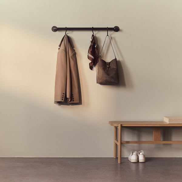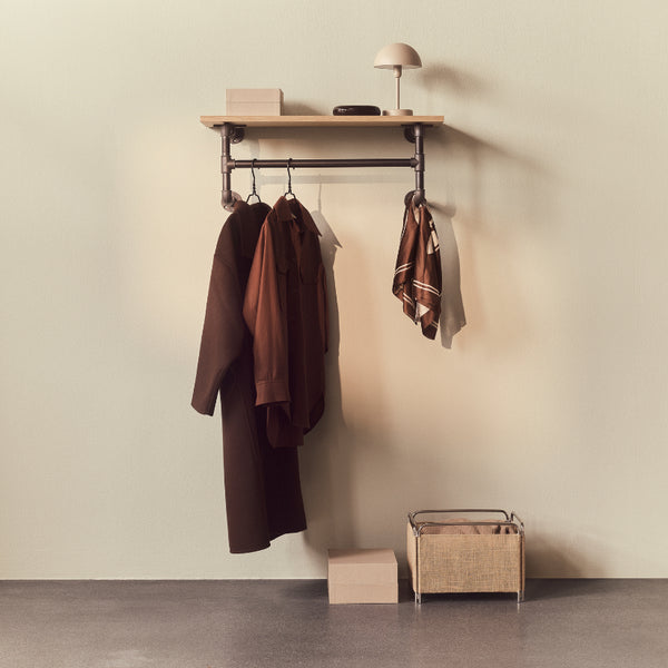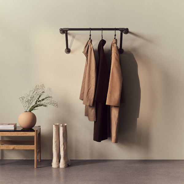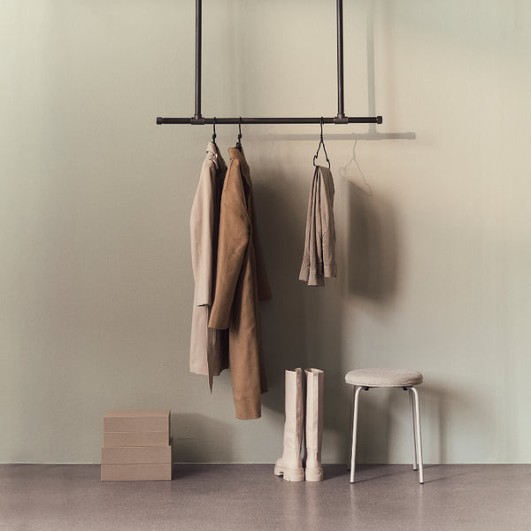 Vores væg- og lofthængte tøjstativer tilbyder en alsidig løsning, der tilføjer et let og luftigt præg til både privat boligen eller butikkens indretning. Med et klassisk, skandinavisk udtryk understøtter de en organiseret hverdag, hvor alle detaljer spiller sammen.