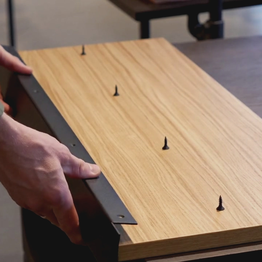 Kombination af elegant egetræ & vandrør for at skabe en stilfuld og holdbar opbevaringsløsning til dine sko.