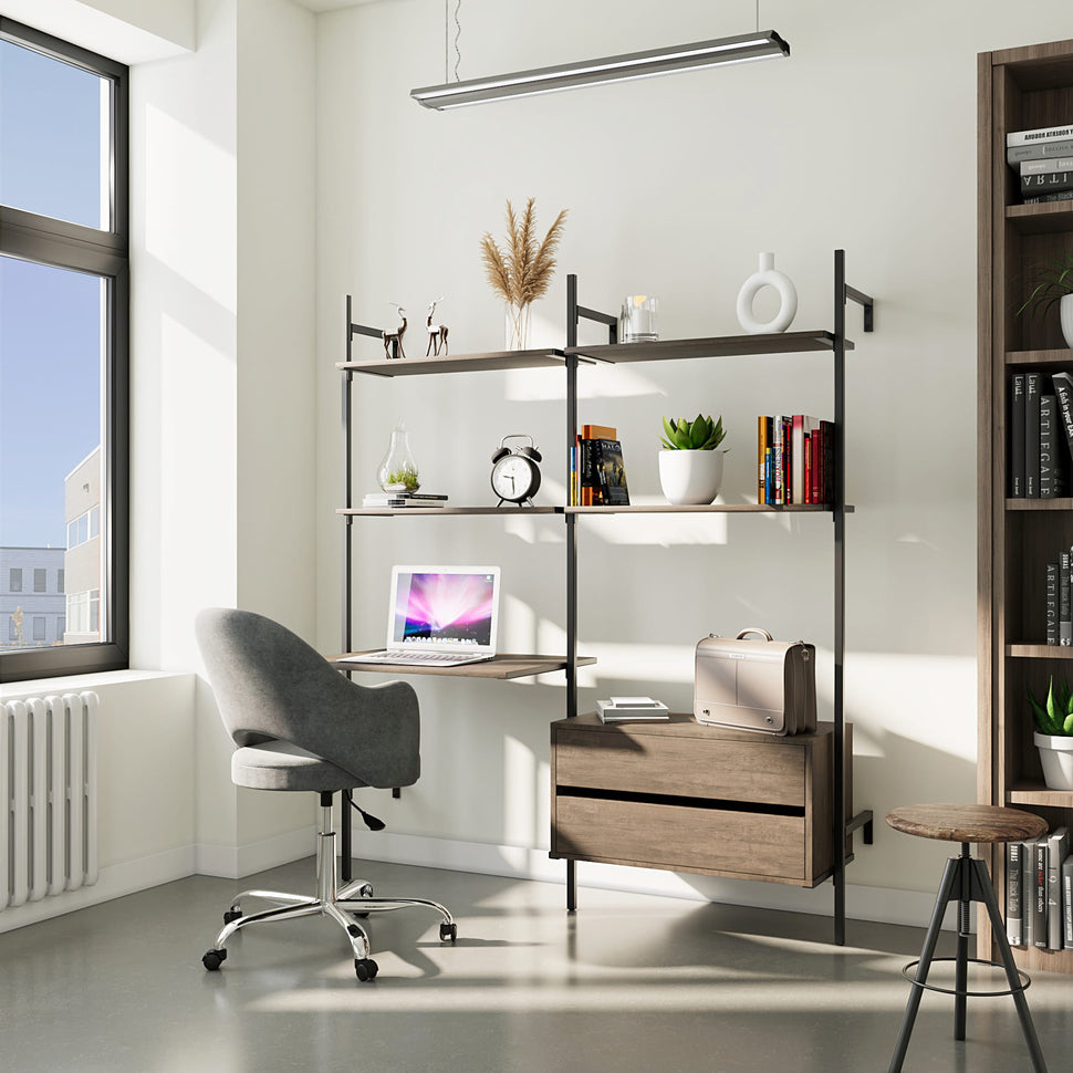 (2 hylder + 1 skrivebord / 2 hylder + 1 kommode)Vi tilbyder gratis rådgivning & design