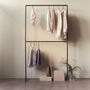 Vores RackBuddy Capone består af to rækker, hvilket giver dig dobbelt opbevaringsplads til tøj, sko og accessories. Tøjstativet er skabt med henblik på at imødekomme den moderne, stilbevidste forbrugers behov for en overskuelig og fleksibel garderobeløsning: