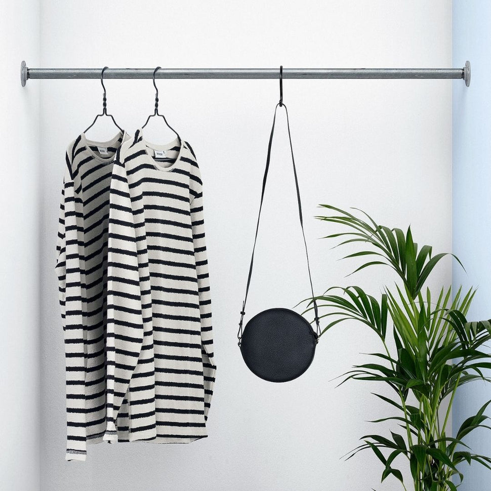 Har du oplevet, at standardløsninger ikke kan opfylde kravene i dit unikke rum? Hos os i RackBuddy skaber vi skræddersyede og stilrene opbevaringsløsninger, der strækker din plads og dine muligheder. Med vores produkt Rackbuddy Logan - Custom tøjstang i vandrør som laves på mål mellem 2 vægge imødekommer vi dine specifikke behov i alt fra entréen til garderoben. Vores innovative design er baseret på robusthed og skandinavisk æstetik, hvilket betyder, at du får en løsning, der både er funktionel og tidløs.