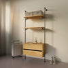 Med The Walk-In med kommode - (2 hylder + 1 kommode) kan du skabe et overskueligt og personligt walk-in-closet, hvor alt har sin plads. Vores løsning er en del af The Walk-In Collection, hvilket giver dig mulighed for at kombinere med yderligere hyldeplads eller hængende elementer efter behov. Se også vores Walk-In reolsystem med 3 rækker med 4 hylder for endnu flere opbevaringsmuligheder.