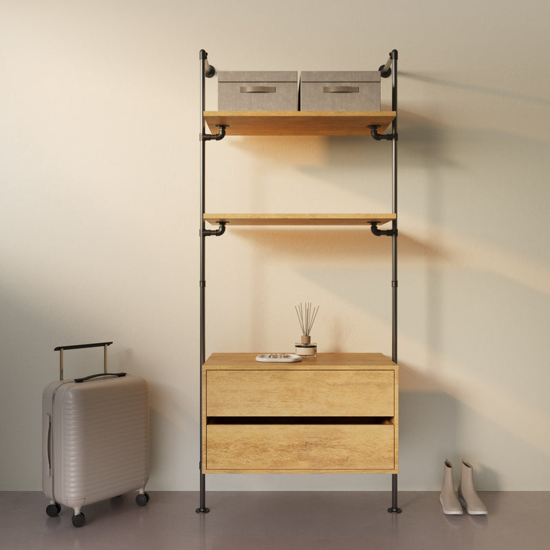 Oplev en skræddersyet garderobeløsning med The Walk-In med kommode - (2 hylder + 1 kommode)