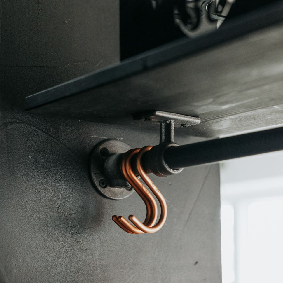 Tøjkroge: Lad din kreativitet løbe løbsk med vores alsidige tøjkroge! Brug dem til at organisere tasker, smykker, køkkenredskaber og endda blomsterpotter. Vælg mellem S-kroge med læderstrop, aluminiumskroge eller vores stilfulde Black O-hooks til vandrør. Disse kroge tilføjer ikke kun funktionalitet, men også et elegant touch til enhver indretning.
